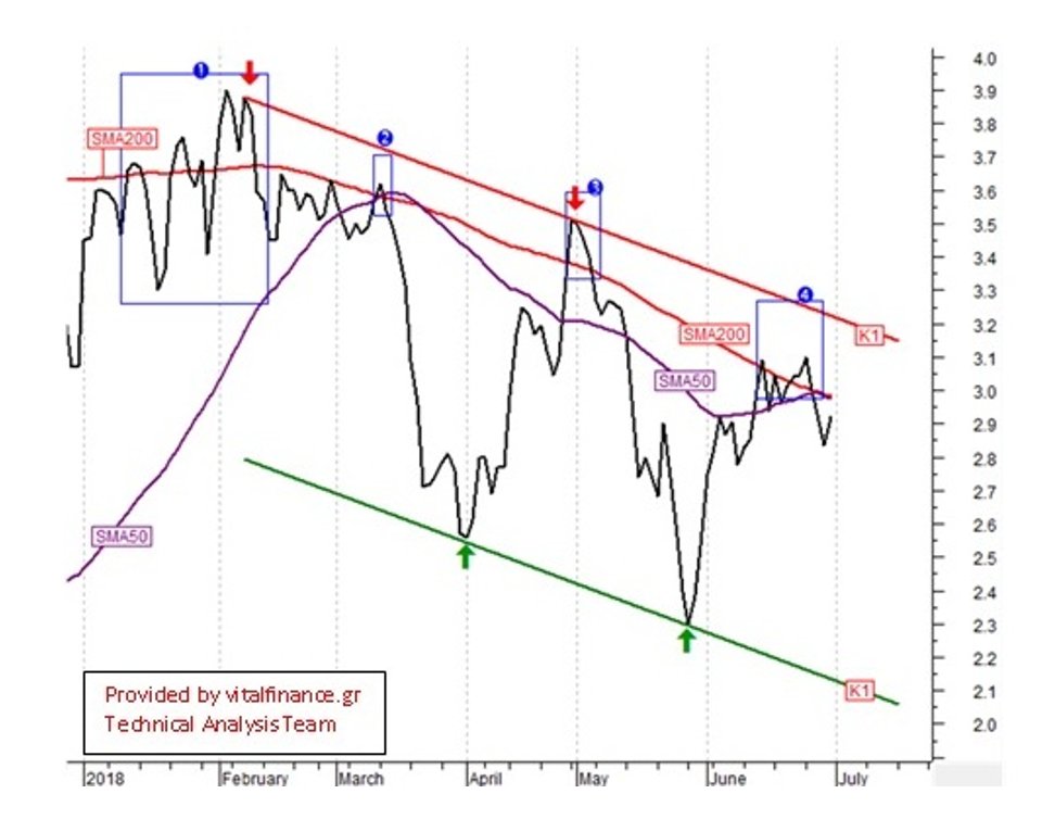 Έχοντας την Παρασκευή την τελευταία συνεδρίαση του Α΄Εξαμήνου του 2018 έχει ενδιαφέρον να προσεγγίσουμε την τεχνική της εικόνα σ΄αυτό το χρονικό διάστημα αναζητώντας ενδείξεις για την πορεία της μετοχής στο Β΄Εξάμηνο.