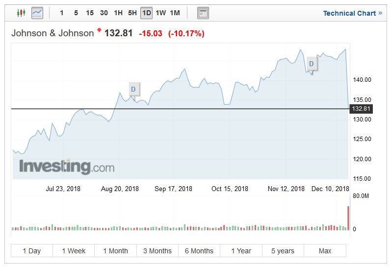 H μετοχή της Johnson & Johnson σημείωσε βουτιά μεγαλύτερη του 10%, στον απόηχο δημοσιεύματος του «Reuters» που ανέφερε ότι η εταιρεία γνώριζε εδώ και δεκαετίες την ύπαρξη αμιάντου στο ταλκ της για μωρά.