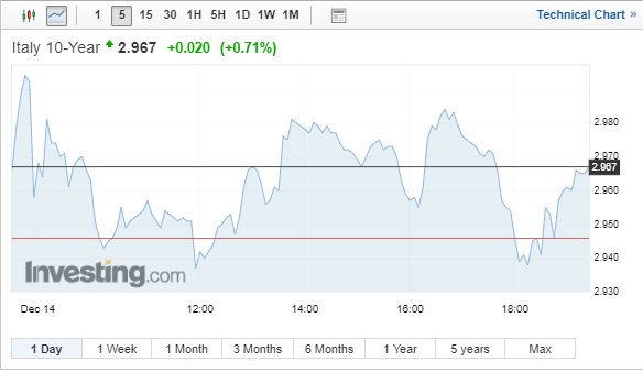 Την ίδια ώρα, σταθεροποίηση κατέγραψε η αγορά ιταλικών ομολόγων, με την απόδοση του 10ετούς να διαμορφώνεται στο 2,959% από 2,967% στο χθεσινό κλείσιμο.