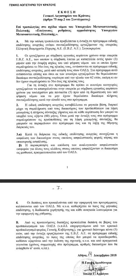 Παράλληλα όπως αναφέρει η τροπολογία, με την προτεινόμενη ρύθμιση τίθεται σε ισχύ πρόγραμμα ειδικής επιδότησης ανεργίας από τον ΟΑΕΔ για όσους εργαζόμενους της εταιρείας «Ελληνική Βιομηχανία Ζάχαρης Α.Ε.» έχουν συμπληρώσει το 56ο έτος της ηλικίας τους και πρόκειται να συνταξιοδοτηθούν εντός της επόμενης πενταετίας.