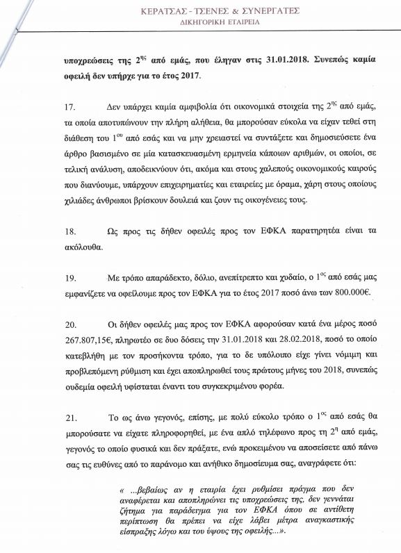 Συνιστούμε στους αναγνώστες μας να διαβάσουν προσεκτικά το εξώδικο, καθώς και το δημοσίευμα και αναμένουμε τα αποδεικτικά στοιχεία για τα οικονομικά στοιχεία στα οποία αναφέρεται το εξώδικο.