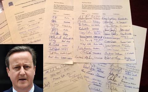 Συνολικά 84 στελέχη του κόμματος, μεταξύ των οποίων και ο Boris Johnson, αλλά και όλοι οι υπουργοί που στήριξαν το «Φεύγουμε», υπογράφουν την επιστολή προς το βρετανό πρωθυπουργό, καλώντας τον να παραμείνει στη θέση του ως πρωθυπουργός, ανεξαρτήτων αποτελέσματος στο δημοψήφισμα.