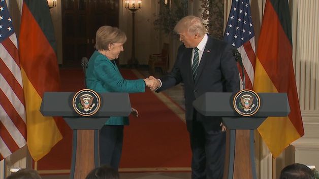 Νατοϊκές δαπάνες, Ουκρανικό και θέματα εμπορίου κυριάρχησαν στη συνέντευξη Τύπου, που παραχώρησαν ο Αμερικανός πρόεδρος Donald Trump και η Γερμανίδα καγκελάριος Angela Merkel μετά την πρώτη συνάντησή τους στον Λευκό Οίκο.