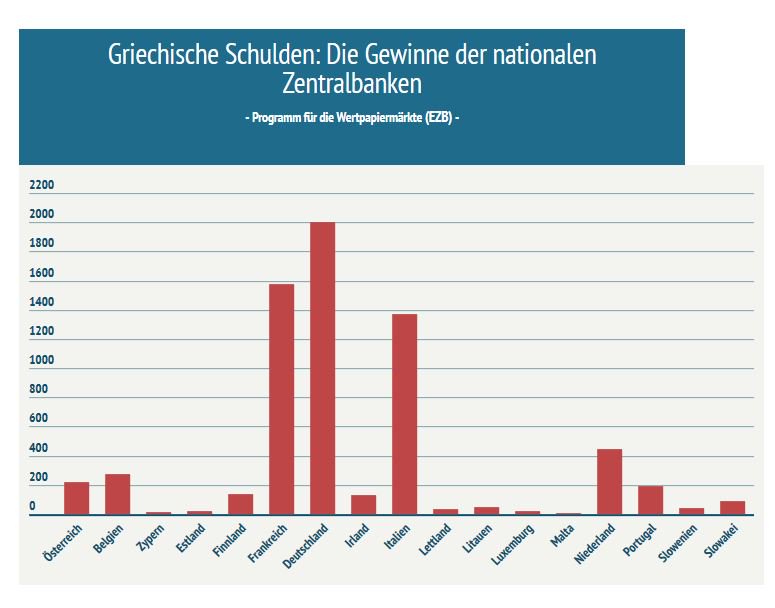 Για παράδειγμα, η Banque de France κέρδισε σχεδόν 1,578 δισ. ευρώ και η Banca d'Italia σχεδόν 1,370 δισ. ευρώ.