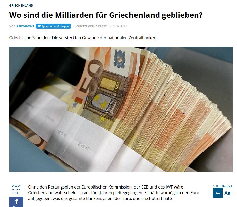 Από τα εκατοντάδες δισεκατομμύρια που χρησιμοποιήθηκαν για να στηρίξουν την Ελλάδα, σχεδόν 27 δισ. χρησιμοποιήθηκαν από τις Κεντρικές Τράπεζες της Ευρωζώνης για να αγοράσουν ελληνικό χρέος.