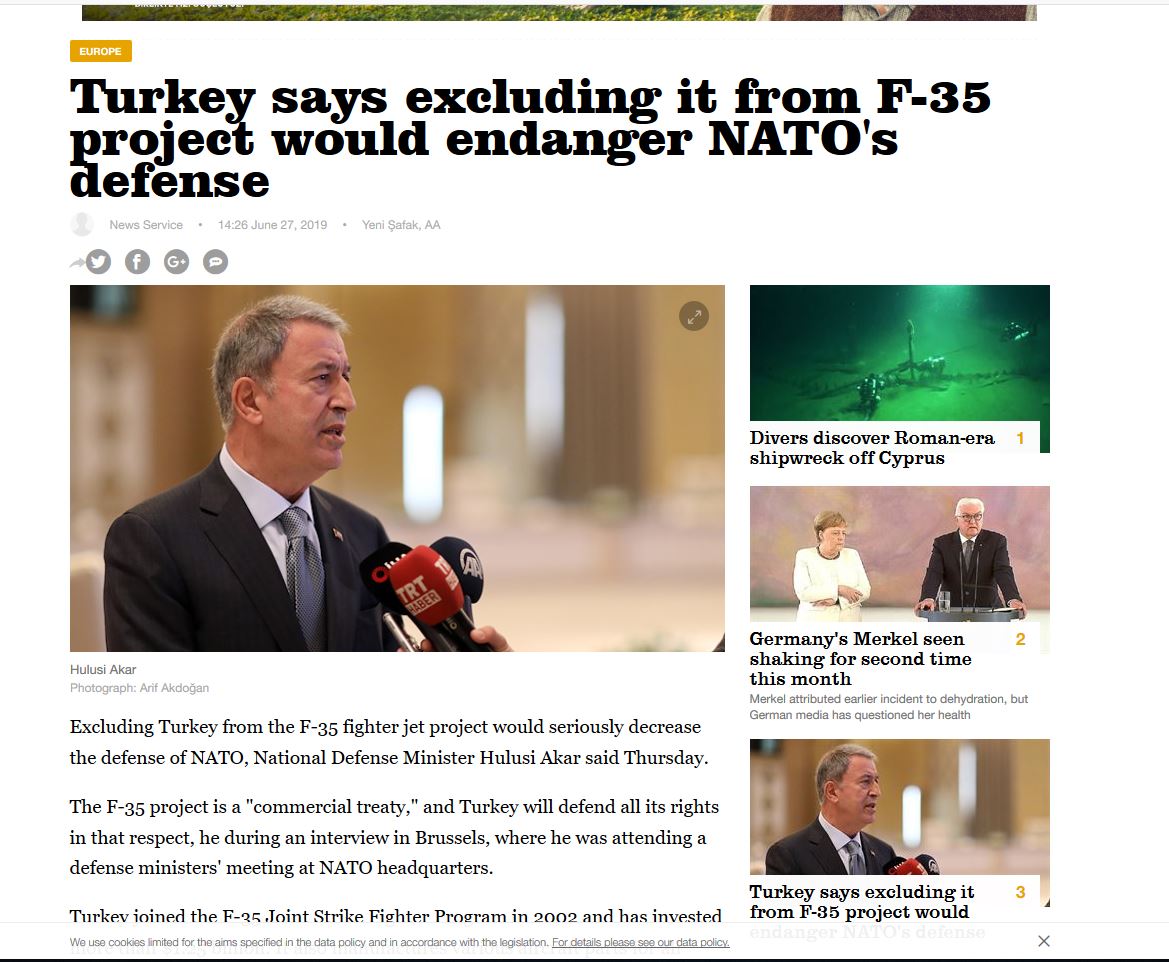 Σημειώνεται ότι οι Ηνωμένες Πολιτείες ούτως ή άλλως έχουν αναστείλει την παράδοση των F-35 – η Τουρκία έχει παραγγείλει 30 και θέλει να αποκτήσει 100 – λόγο της απόφασης της κυβέρνησης Erdogan να αγοράσει το ρωσικό πυραυλικό σύστημα S-400.