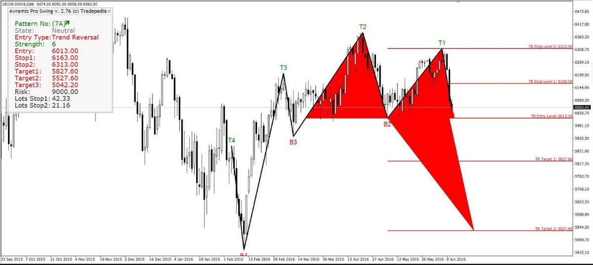 Το βρετανικό χρηματιστήριο FTSE 100 είχε κλείσιμο στις 6044 στις 13 Ιουνίου του 2016 και με βάση ένα απαισιόδοξο σενάριο θα μπορούσε να προσεγγίσει την ζώνη των 5527 μονάδων ή πτώση 9% έως -14% στις 5042 μον.