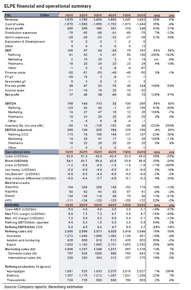 Με τη σύσταση hold (διακράτηση) και την τιμή στόχο στα 4,5 ευρώ επανέρχεται η Berenberg για τη μετοχή των Ελληνικών Πετρελαίων, μετά την ανακοίνωση των αποτελεσμάτων δευτέρου τριμήνου, τα οποία τα χαρακτηρίζει "αναπάντεχα φτωχά".
