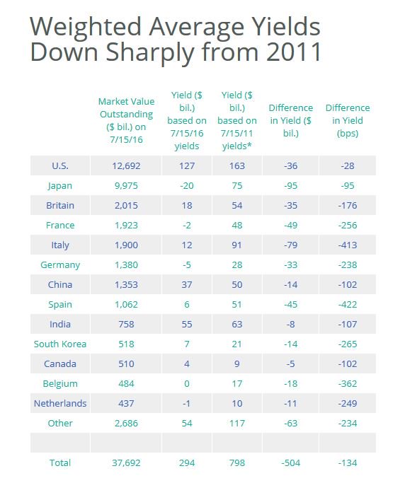 Σε σχέση με τις αποδόσεις το 2011 οι επενδυτές έχουν χάσει 500 δισ. δολάρια σε ετήσια έσοδα για τίτλους ύψους 38 τρισ. δολαρίων.