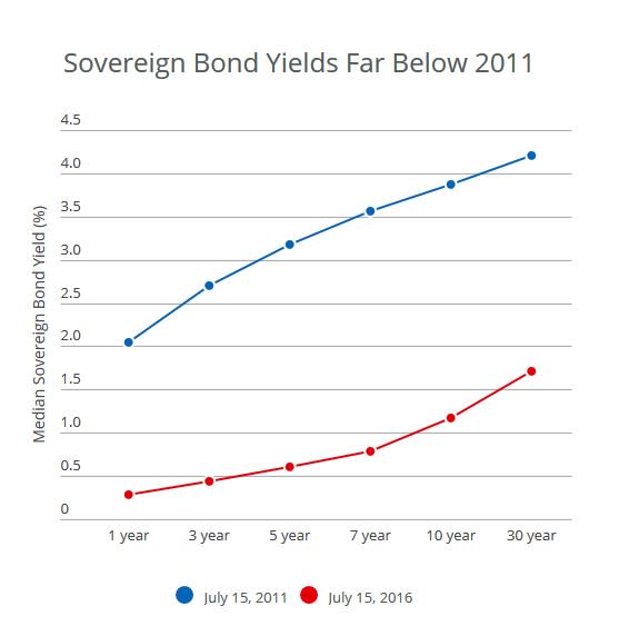 Αυτό έχει δημιουργήσει νέες προκλήσεις για το εισόδημα των επενδυτών, κυρίως τις ασφαλιστικές εταιρείες και τα συνταξιοδοτικά ταμεία, ενώ επιτρέπουν στις κυβερνήσεις να δανείζονται με όλο και πιο ελκυστικές τιμές.