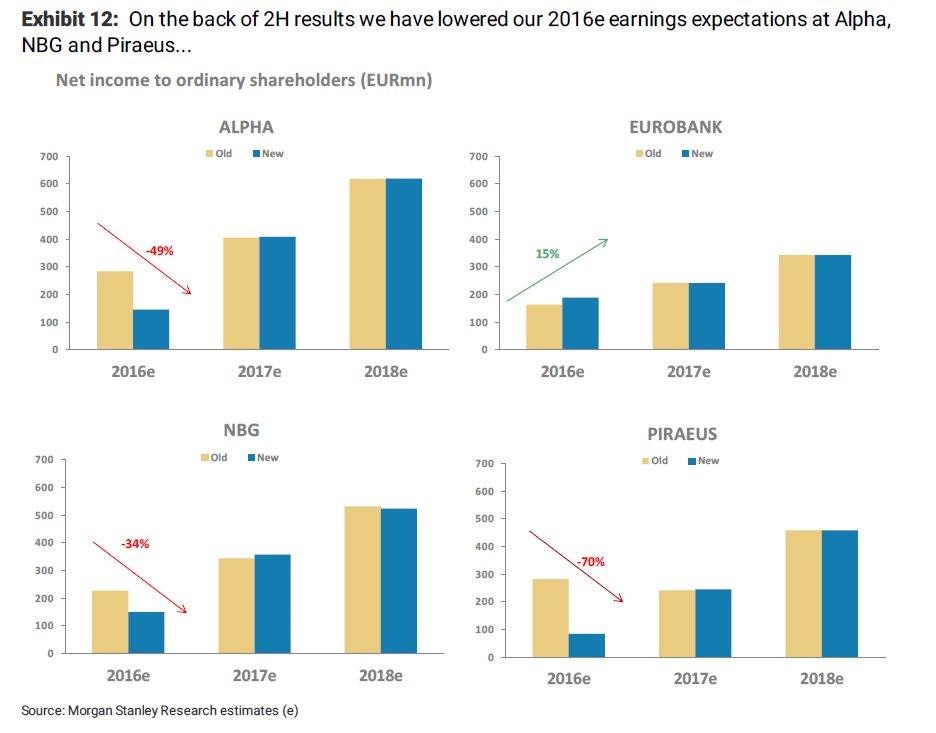 Στην σημερινή 17 Οκτωβρίου 2016... 23σέλιδη ανάλυσή της υπό τον τίτλο «Assessing the earnings power» (Εκτιμώντας την ισχύ της κερδοφορίας), που σας παρουσιάζει το www.bankingnews.gr, η Morgan Stanley επισημαίνει ότι αν και μείωσε τις εκτιμήσεις για τα κέρδη των ελληνικών τραπεζών, εξακολουθούν να είναι υψηλότερες των μέσων εκτιμήσεων.