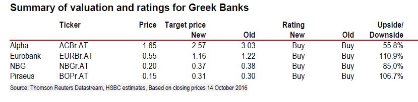Μόνο για την Πειραιώς η HSBC αυξάνει στα 0,31 ευρώ την τιμή στόχο, από 0,30 ευρώ προηγουμένως