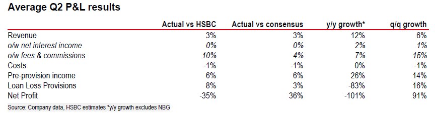 Η αύξηση, επίσης, των εσόδων από τόκους κυμάνθηκαν σε επίπεδα σύμφωνα με τις εκτιμήσεις, ενώ υπήρξε και καλύτερη εικόνα στις προμήθειες και τα one-off κέρδη.