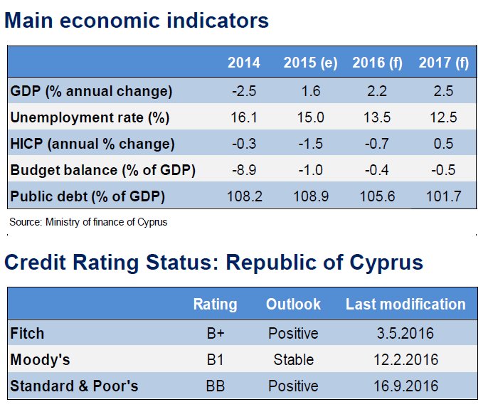 Οι προοπτικές της ανάπτυξης της κυπριακής οικονομίας το 2016 είναι θετικές, με το ΑΕΠ να εκτιμάται ότι θα αυξηθεί κατά 1,7%, από 1,6% το 2015