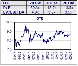 Η Alpha Finance συντηρεί τη σύσταση buy (αγορά) για τον ΟΤΕ, με την τιμή στόχο στα 11,5 ευρώ.