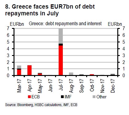 Αυτό οδηγεί σε πιο ουσιαστικές διαφωνίες ανάμεσα στην Ελλάδα και τους πιστωτές της και ως εκ τούτου, η HSBC βλέπει αυξανόμενο κίνδυνο παρατεταμένων καθυστερήσεων στις διαπραγματεύσεις, οι οποίες θα μπορούσαν να διαρκέσουν ακόμη και έως την επικίνδυνη προθεσμία του Ιουλίου, όταν η Ελλάδα θα πρέπει να καταβάλει 7 δισ. ευρώ για τη λήξη των ομολόγων της.