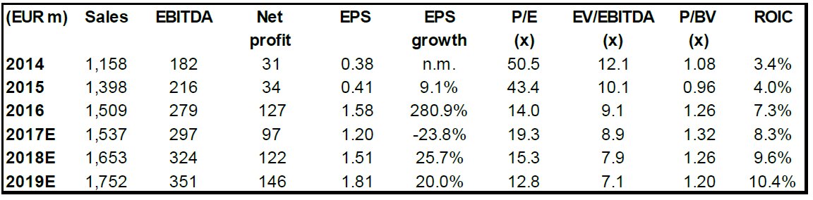 Η μετοχή διαπραγματεύεται σε ελκυστικά επίπεδα, παρά το γεγονός ότι αυξήθηκε κατά 22% το 2016 και από την αρχή του 2017 κερδίζει 5%.