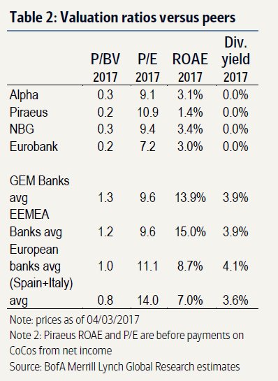 Η Bank of America Merrill Lynch θεωρεί δίκαιες τις αποτιμήσεις των τεσσάρων ελληνικών τραπεζών.