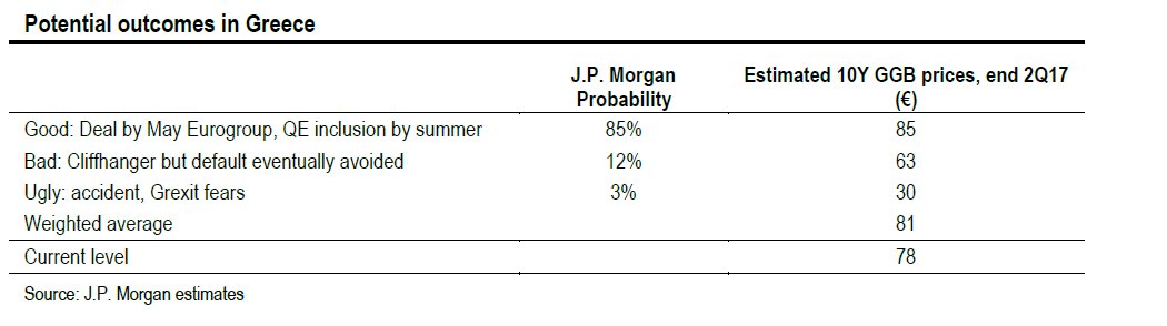 Αν και αποδίδει μικρή πιθανότητα στα πιο δυσμενή σενάρια, η JP Morgan συνεχίζει να θεωρεί ότι ένα ατύχημα Grexit είναι ένα εξαιρετικά απίθανο σενάριο.