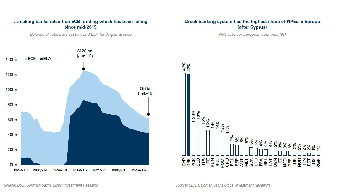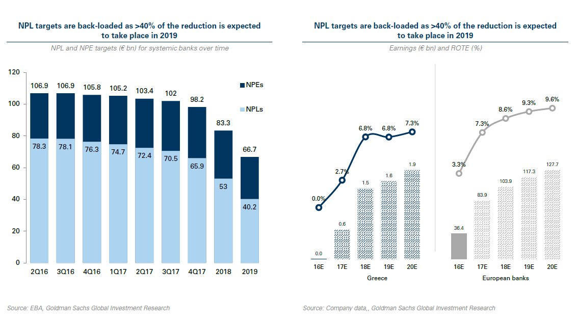 Ειδικό κεφάλαιο για την πορεία του ελληνικού τραπεζικού κλάδου αφιερώνει η Goldman Sachs, στην τελευταία ανάλυσή της για τις ευρωπαϊκές τράπεζες, επιχειρώντας μέσα από 7 διαγράμματα να σκιαγραφήσει την πορεία και τις προοπτικές του ελληνικού κλάδου.