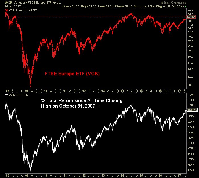 Τα ευρωπαϊκά χρηματιστήρια κλείνουν σε υψηλό 21 μηνών, απέχουν μόλις 9% από το υψηλό όλων των εποχών από τον Οκτώβριο του 2007 (με όρους δολαρίων)