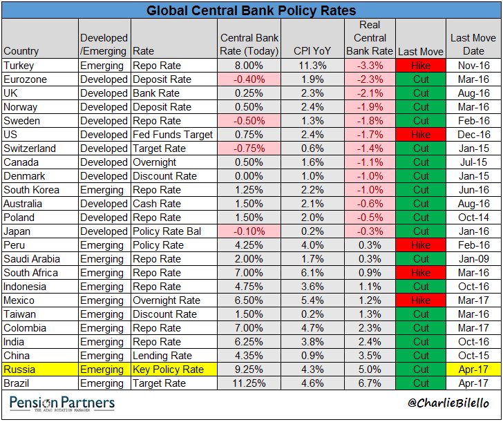 Πάντως χώρες όπως η Ρωσία επιχειρούν να εξορθολογίσουν την νομισματική τους πολιτική μειώνοντας τα επιτόκια τα οποία αποκλιμακώθηκαν για 4η φορά το τελευταίο διάστημα στο 9,25%.