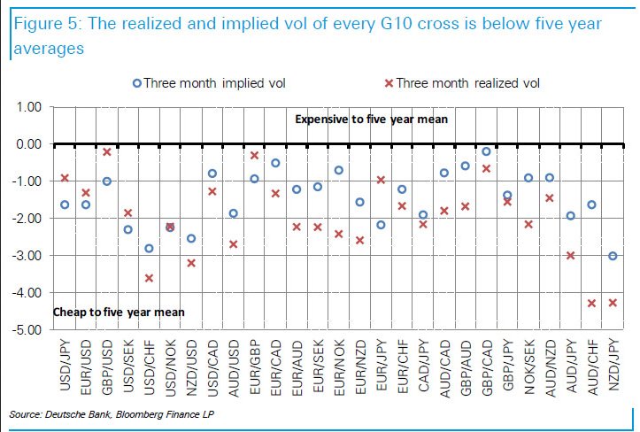 Πράγματι, όπως σημειώνει ο Harvey, "κάθε ζεύγος νομισμάτων του G10 είναι τώρα κάτω από τους πέντε μεσαίους μέσους όρους, με το πραγματικό και σιωπηλό όγκο σε ζευγάρια κινδύνου, όπως το AUD/JPY και το NZD/JPY, να είναι ιδιαίτερα χαμηλά.