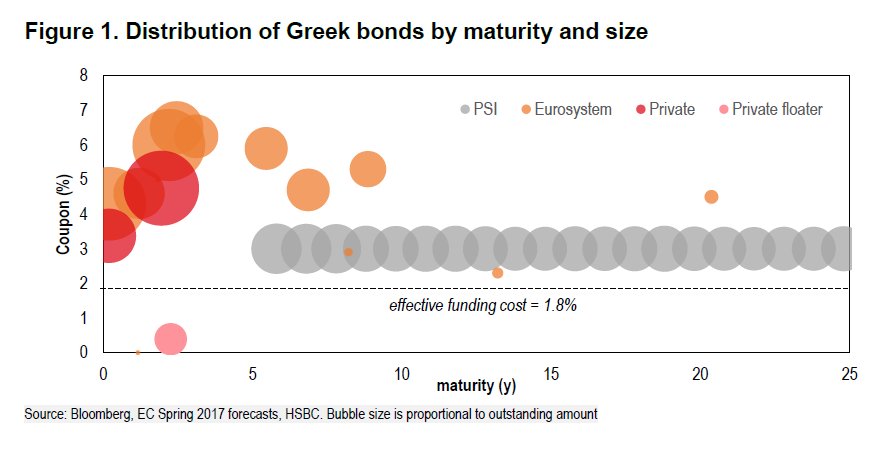 Η HSBC αναπαράγει τα δημοσιεύματα που αναφέρουν ότι μόλις επιτευχθεί συμφωνία, η Ελλάδα "στοχεύει στην πρόσβαση στις χρηματοπιστωτικές αγορές το συντομότερο δυνατό" (Bloomberg, 4 Μαΐου 2017).