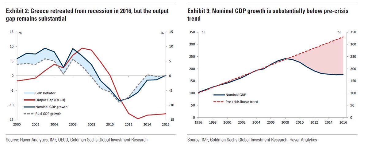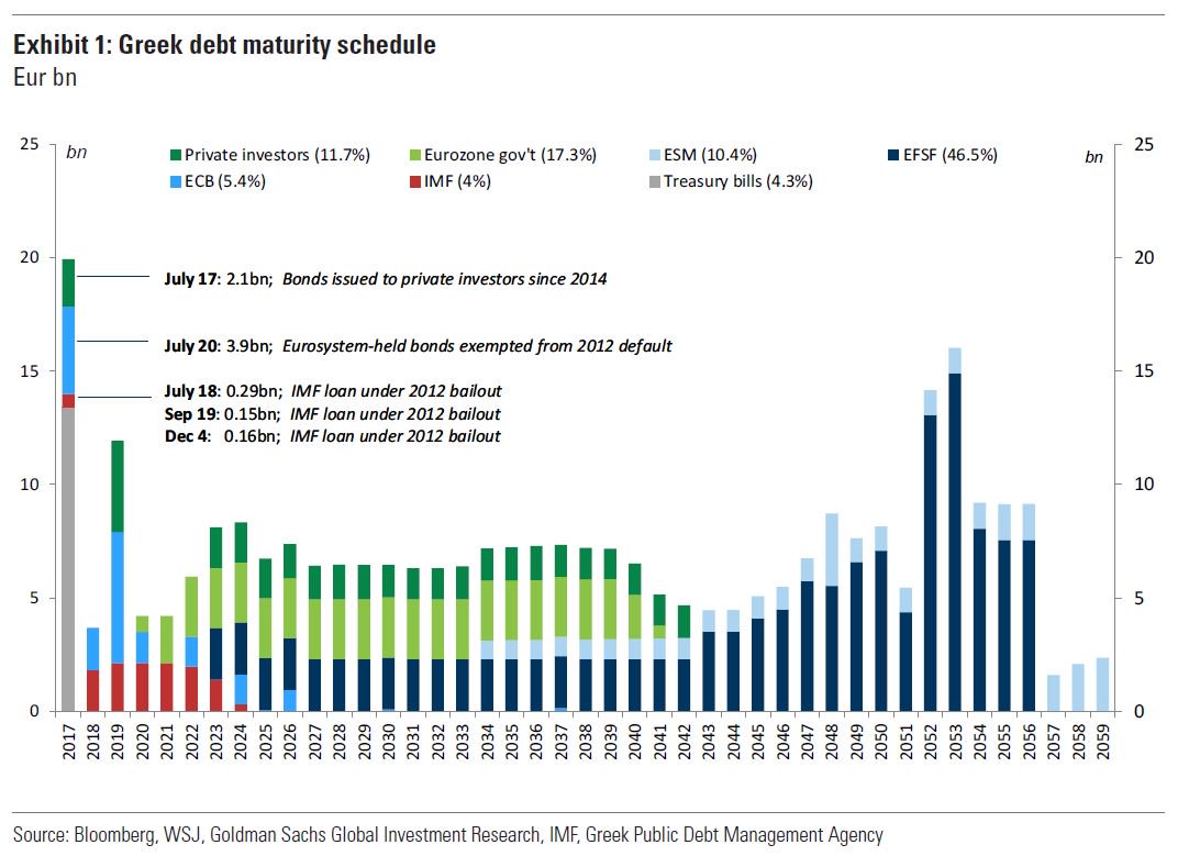 Η Goldman Sachs υπενθυμίζει ότι στα τέλη του 2016, ο Benoît Coeuré δήλωσε πως η οικονομική σταθερότητα στην Ελλάδα θα είναι μια διάσταση της ανάλυσης της ΕΚΤ εάν θα εξετάσει τη συμμετοχή της χώρας στο QE.