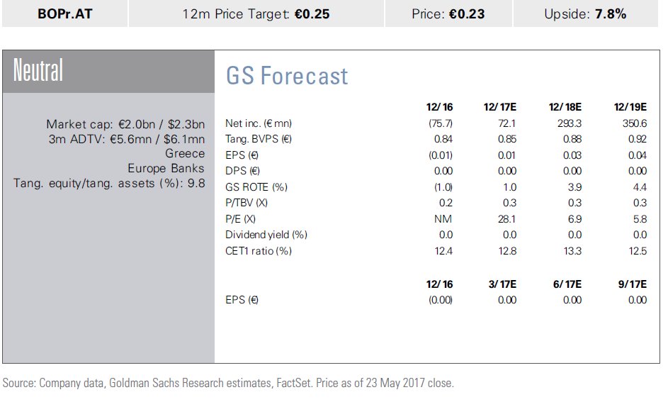 Μάλιστα, η τιμή στόχος που δίνουν είναι στα 0,28 ευρώ από την Morgan Stanley και στα 0,25 ευρώ από την Goldman Sachs, ήτοι 10-30% υψηλότερα από τα τρέχοντα επίπεδα.