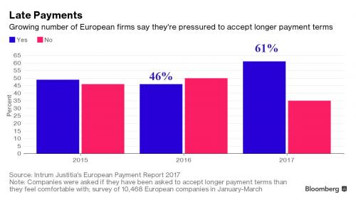 Σύμφωνα με την Ευρωπαϊκή Έκθεση Πληρωμών για το 2017 που καταρτίζεται σε ετήσια βάση από τη σουηδική Intrum Justitia, ένας αυξανόμενος αριθμός μικρών και μεσαίων επιχειρήσεων στην Ευρώπη έχουν παραπονεθεί ότι αντιμετωπίζουν υπερβολικές καθυστερήσεις στην πληρωμή για τις υπηρεσίες τους, με μεγάλα τμήματα του κλάδου να ζητούν πιο σκληρούς νόμους για την αντιμετώπιση του προβλήματος.