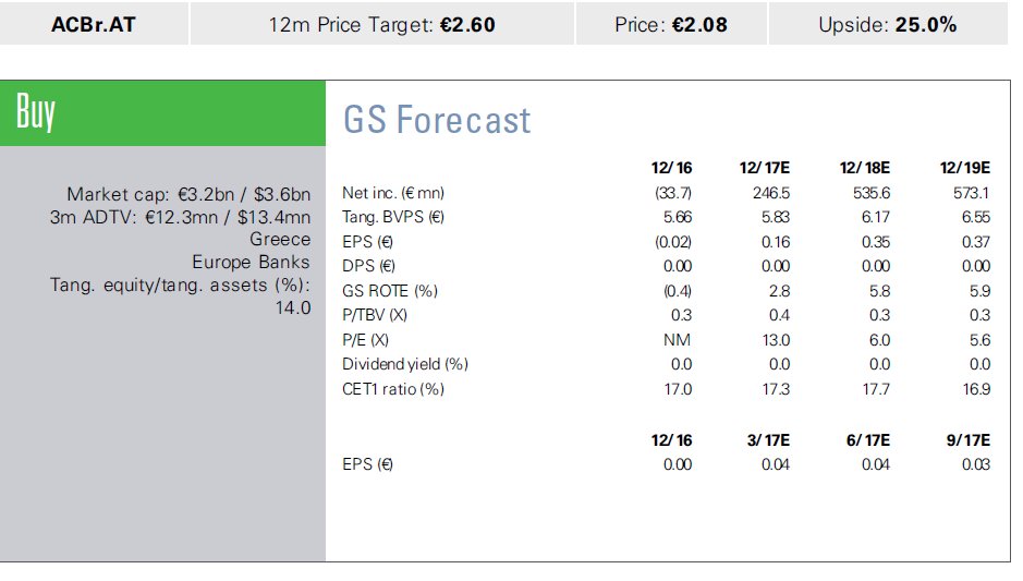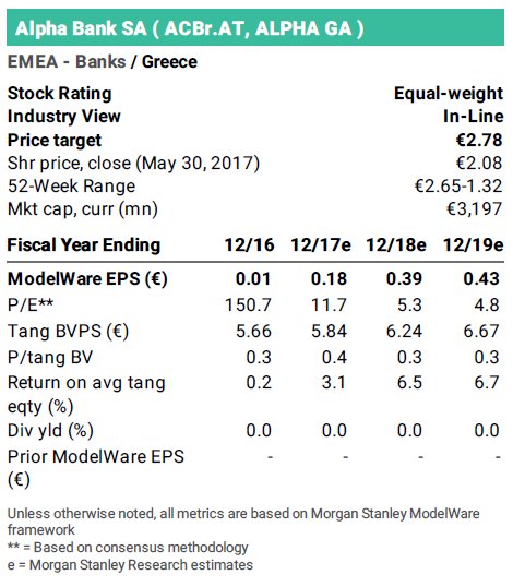 Θετικά είδαν τα αποτελέσματα πρώτου τριμήνου του 2017 οι αναλυτές της Goldman Sachs και της Morgan Stanley, με την πρώτη όμως να συστήνει buy (αγορά) και τη δεύτερη Equal-weight (αποδόσεις παρόμοιες με εκείνες της αγοράς).