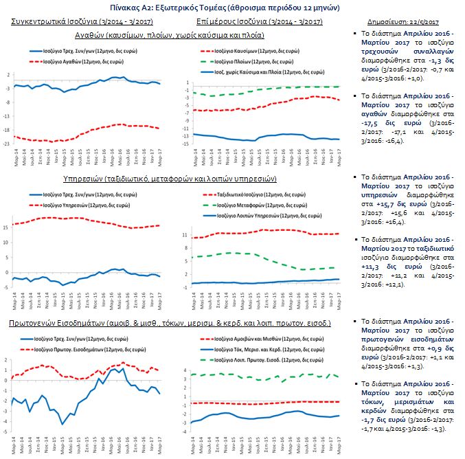 Οι αντίστοιχοι δείκτες στους τομείς των υπηρεσιών και του καταναλωτή παρουσίασαν ενίσχυση κατά 2,6 και 2,5 ΜΔ αντίστοιχα. Αξίζει να σημειωθεί ότι ο δείκτης εμπιστοσύνης στις υπηρεσίες παρέμεινε σε ανοδική τροχιά για 4ο συνεχή μήνα καταγράφοντας υψηλό 29 μηνών τον Μάιο 2017. Τέλος, ο δείκτης εμπιστοσύνης καταναλωτή κατέγραψε θετική μηνιαία μεταβολή για 2ο συνεχή μήνα και ανήλθε σε υψηλό 4 μηνών.