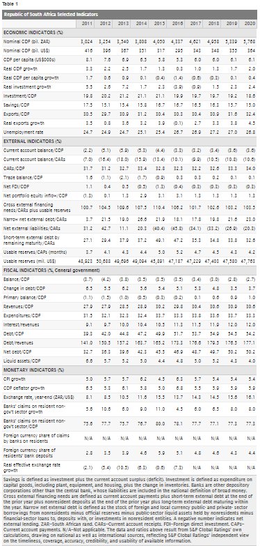 Ο ρυθμός οικονομικής ανάπτυξης παραμένει αδύναμος, γεγονός που δημιουργεί κινδύνους για το ρυθμό ανάπτυξης της δημοσιονομικής εξυγίανσης, με αυξανόμενες ενδεχόμενες υποχρεώσεις, που θα επηρεάσουν αρνητικά την ικανότητα της Νοτίου Αφρικής να μειώσει τις οικονομικές ανισότητες μεσοπρόθεσμα.