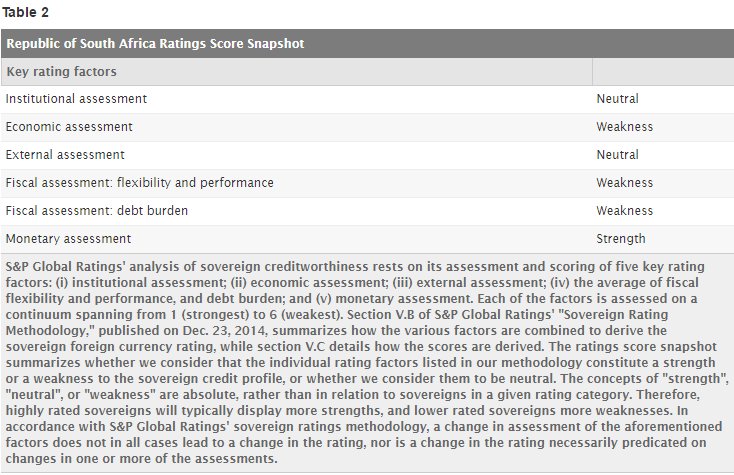 Η Standard & Poor’s επιβεβαίωσε σήμερα (2 Ιουνίου 2016) τη μακροπρόθεσμη πιστοληπτική ικανότητα της Νότιας Αφρικής σε ΒΒ+, ενώ διατηρεί τις προοπτικές επαναξιολόγησης (outlook) αρνητικές.