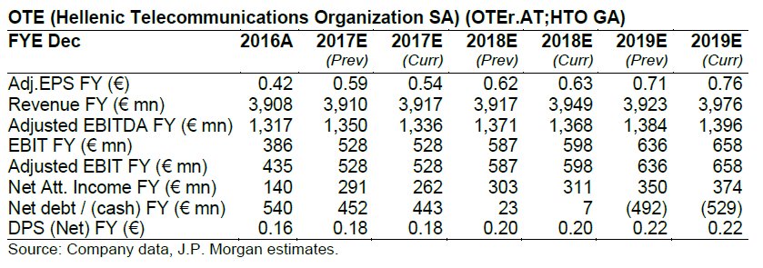 Αναλυτικά οι εκτιμήσεις της JP Morgan Cazenove για τον ΟΤΕ: