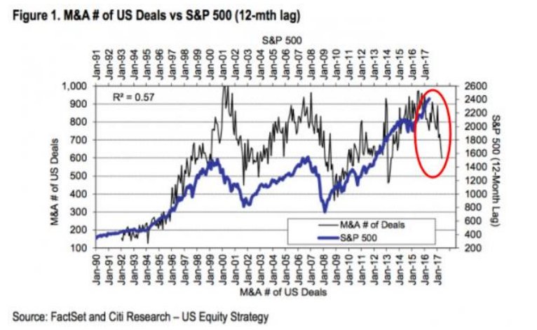 Ένα από τα τρομακτικότερα γραφήματα που μπορεί να εξετάσει κανείς που κατέχει αμερικανικές μετοχές, είναι αυτό του μεγέθους των εξαγορών και των συγχωνεύσεων από την αρχή του 2017.