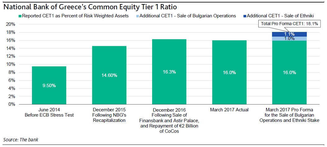 Η συναλλαγή θα αυξήσει επίσης την πρόσθετη ρευστότητα της Εθνικής Τράπεζας, η οποία είναι απαραίτητη για την προσπάθεια της να μειώσει τη χρηματοδότησή του ELA, η οποία είναι υψηλού κόστους και φτάνει περίπου τα 5,6 δισ. ευρώ ή περίπου το 7,4% του συνόλου των περιουσιακών στοιχείων τον Μάρτιο του 2017.