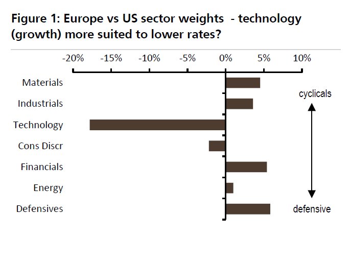 Αντίθετα, στις ΗΠΑ, overweight είναι η τεχνολογία και το λιανεμπόριο.