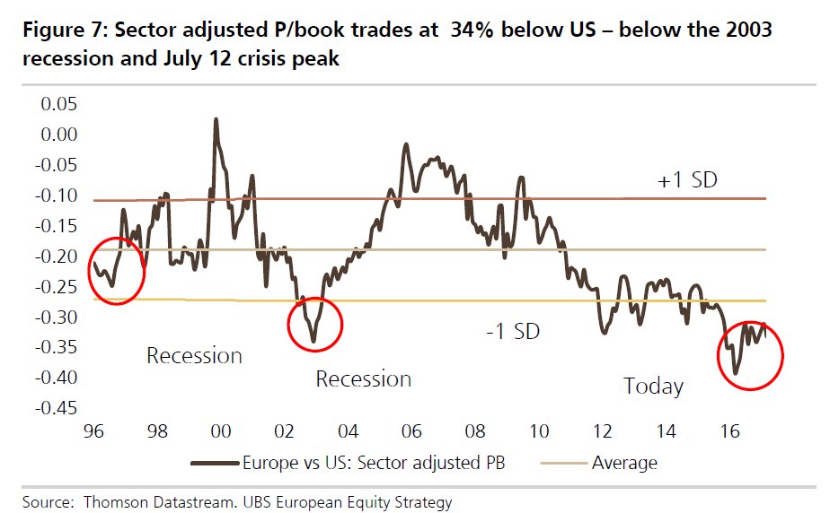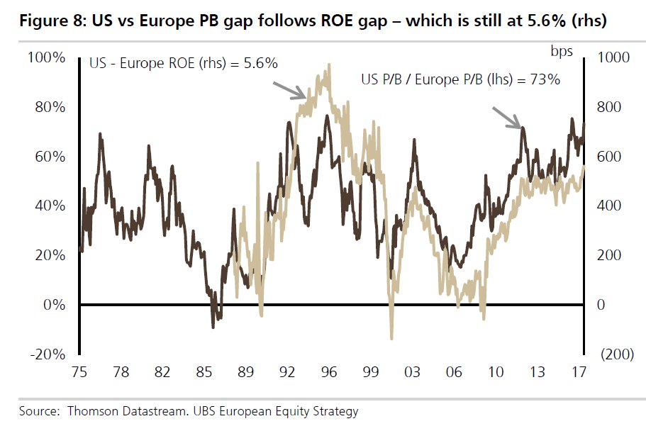 3. Η αποτίμηση P / Book δείχνει την Ευρώπη κατά 36% φθηνότερη από τις ΗΠΑ