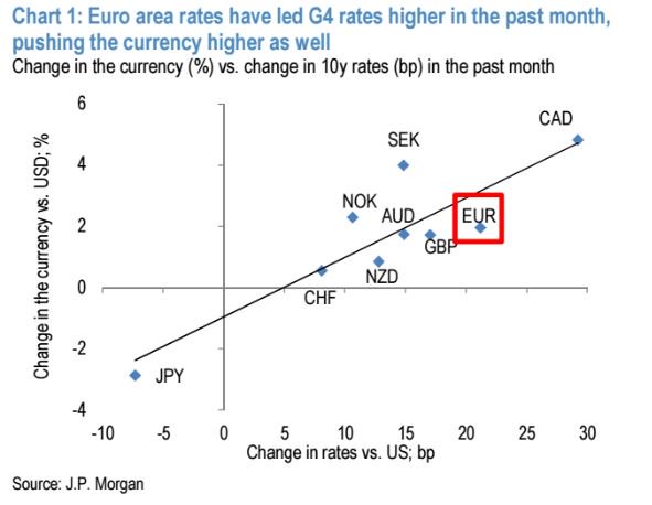 Την ίδια ώρα, σε πολιτικό επίπεδο, το ευρώ έχει ωφεληθεί από την αποδυνάμωση του αντιευρωπαϊκού κινήματος «Πέντε Αστέρων» του Bebe Grillo στην Ιταλία, σημειώνει η JP Morgan.