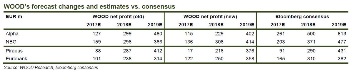 Η Wood δίνει σύσταση buy (αγορά) για την Alpha bank και για την Εθνική, ενώ για την Πειραιώς και τη Eurobank διατηρεί τη σύσταση hold (διακράτηση).