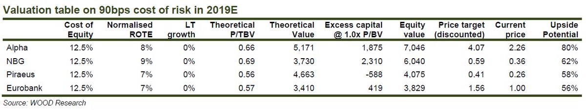 Παρόλο που το βλέπει πρόωρο, η δυνατότητα των ελληνικών τραπεζών είναι να μειωθεί το κόστος κινδύνου στις 90 μονάδες βάσης σε όλες τις τράπεζες μέχρι το 2019E.