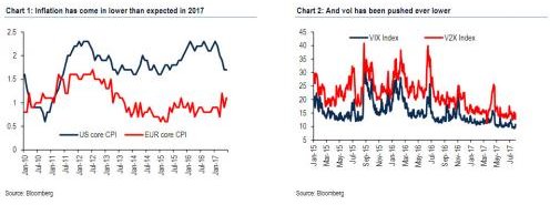 Ο πληθωρισμός σύμφωνα με την BofA, παραμένει χαμηλά στις ΗΠΑ, αλλά και στη Ευρωζώνη, με τους οικονομολόγους μάλιστα να προβλέπουν ότι το 2018 ο πληθωρισμός στην Ευρωζώνη θα μείνει στα επίπεδα του 1%.