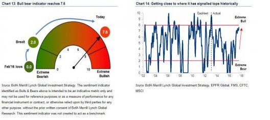 Ο δείκτης Bull & Bear της BofA βρίσκεται τώρα στις 7,6 μονάδες, πλησιάζοντας επικίνδυνα το σημείο "sell" που βρίσκεται στο επίπεδο των 8 μονάδων...