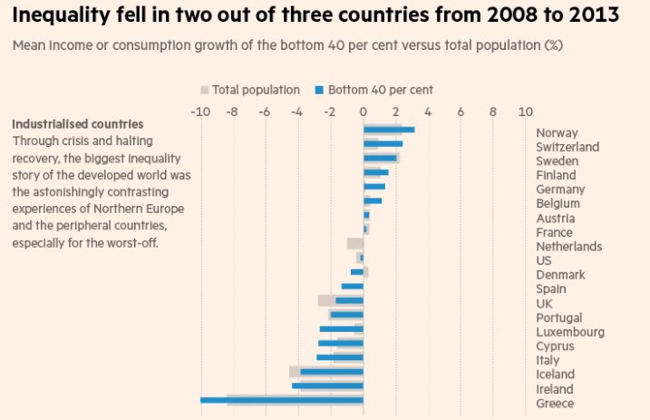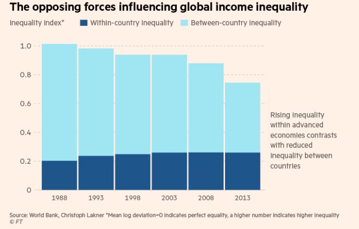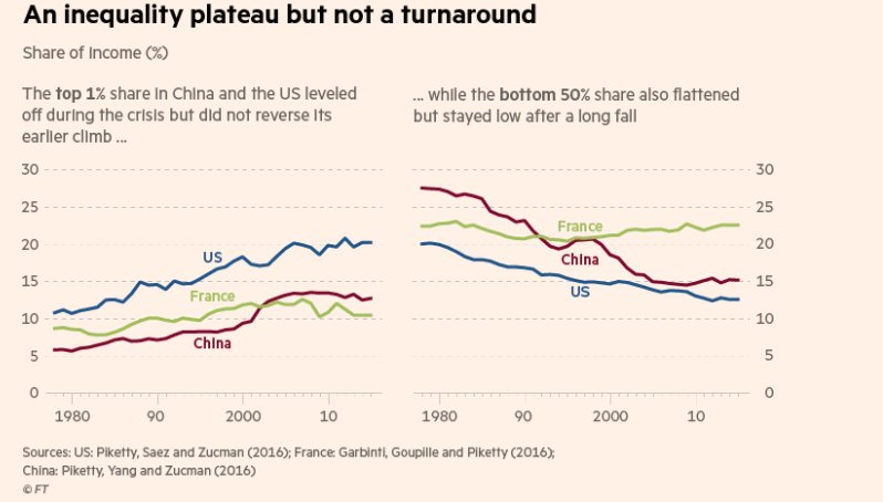 Την περίοδο που ακολούθησε μετά την χρηματοπιστωτική κρίση επιταχύνθηκε μία τάση στην παγκόσμια εισοδηματική ανισότητα, ενώ μια άλλη, αντίθετη τάση, φαίνεται να εξαφανίζεται, σύμφωνα με τα όσα διαπιστώνουν σε ανάλυσή τους οι Financial Times.