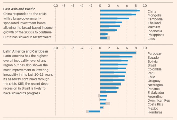 Η εισοδηματική ανισότητα ωστόσο στο εσωτερικό της χώρας είναι μια πιο περίπλοκη ιστορία. Μετά από μια μακρά περίοδο ανόδου, φαίνεται να έχει αντιστραφεί μόνο ελαφρώς -η οποία αναστροφή μπορεί να είναι προσωρινή.