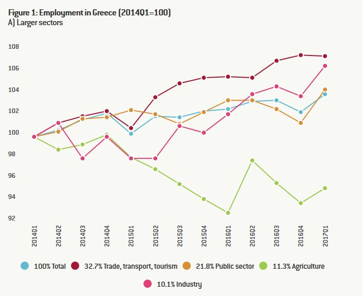 Η απασχόληση άρχισε να αυξάνεται το 2014, με μια βραχυχρόνια αποτυχία κατά το πρώτο τρίμηνο του 2015, όταν ήρθε η κυβέρνηση του ΣΥΡΙΖΑ.