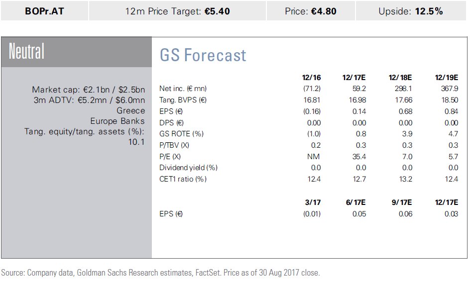 Εντούτοις, η τελευταία θεωρεί τη μετοχή ως την πιο αμυντική σε σχέση με τις άλλες ελληνικές τραπεζικές μετοχές.