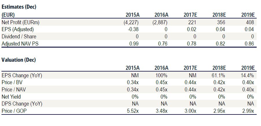 Η τιμή στόχος που δίνει στη μετοχή η Goldman Sachs είναι στα 2,80 ευρώ, ενώ αντίστοιχα η τιμή στόχος που δίνει η BofA είναι 1,83 ευρώ.